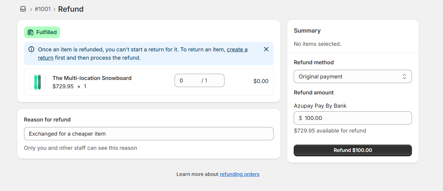 For fruther information about refunding orders, please refer to this Shopify help information: