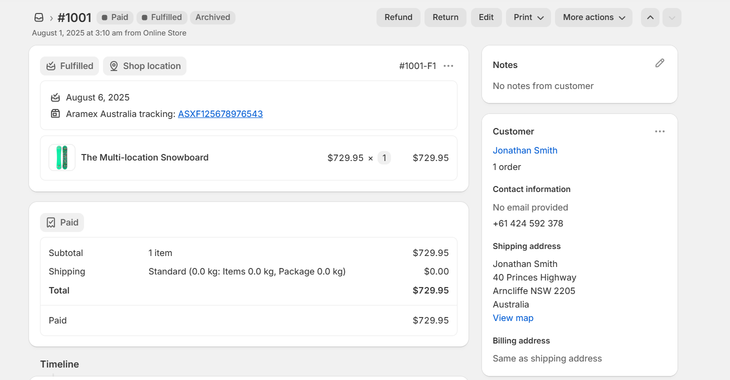 You should see orders paid with Azupay Pay By Bank in the Orders section of your Shopify store. You are able to action any order paid with Azupay Pay By Bank in the same way that you manage orders made with other payment methods.