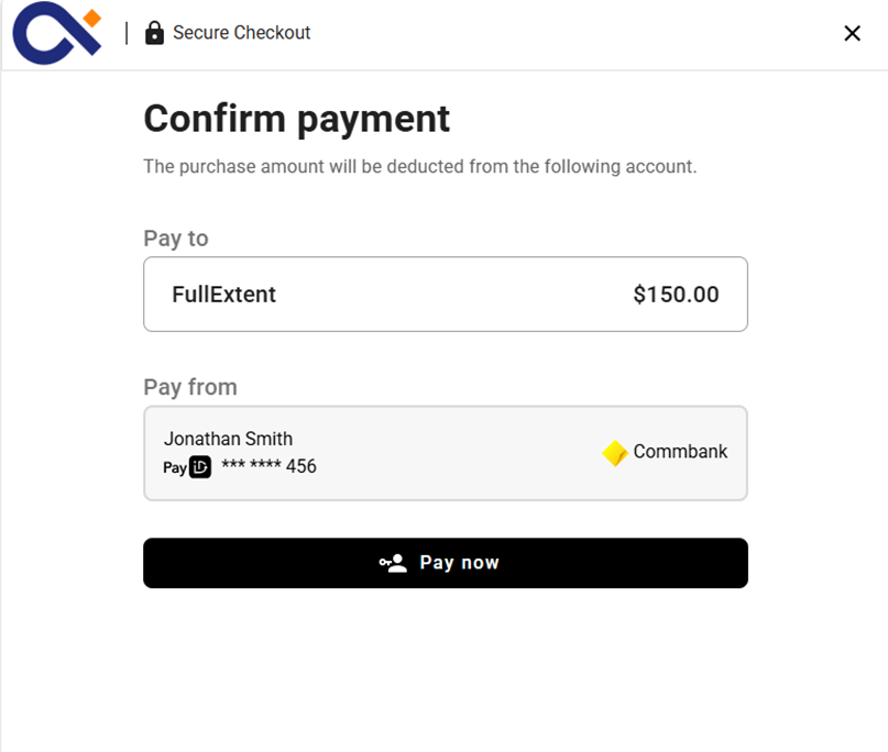 - Once authenticated, the payment will be taken from linked account to the PayTo agreement