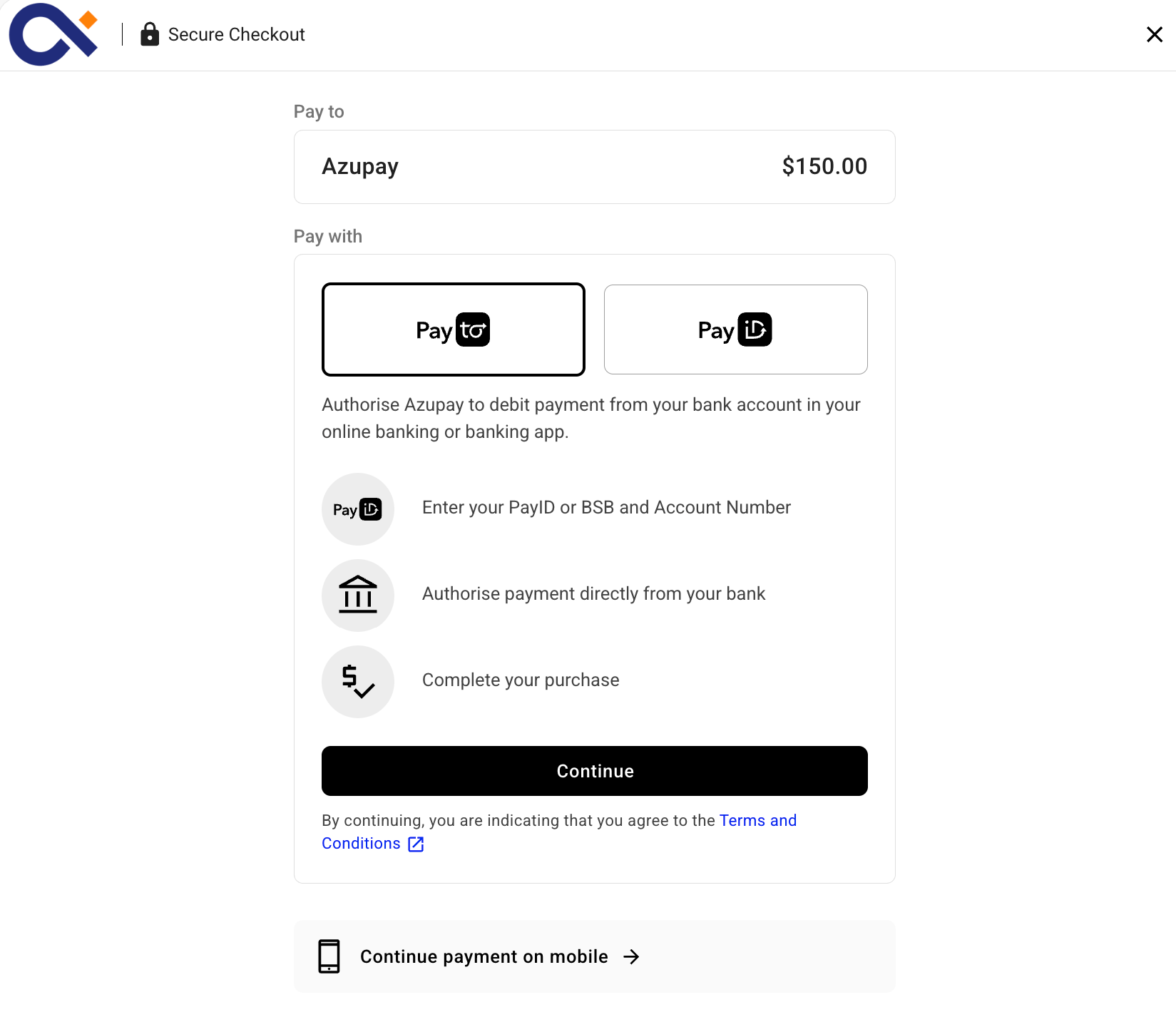 Our Pay by Bank UX solution provides merchants with flexible payment options, allowing them to choose between PayTo, PayID, or both.