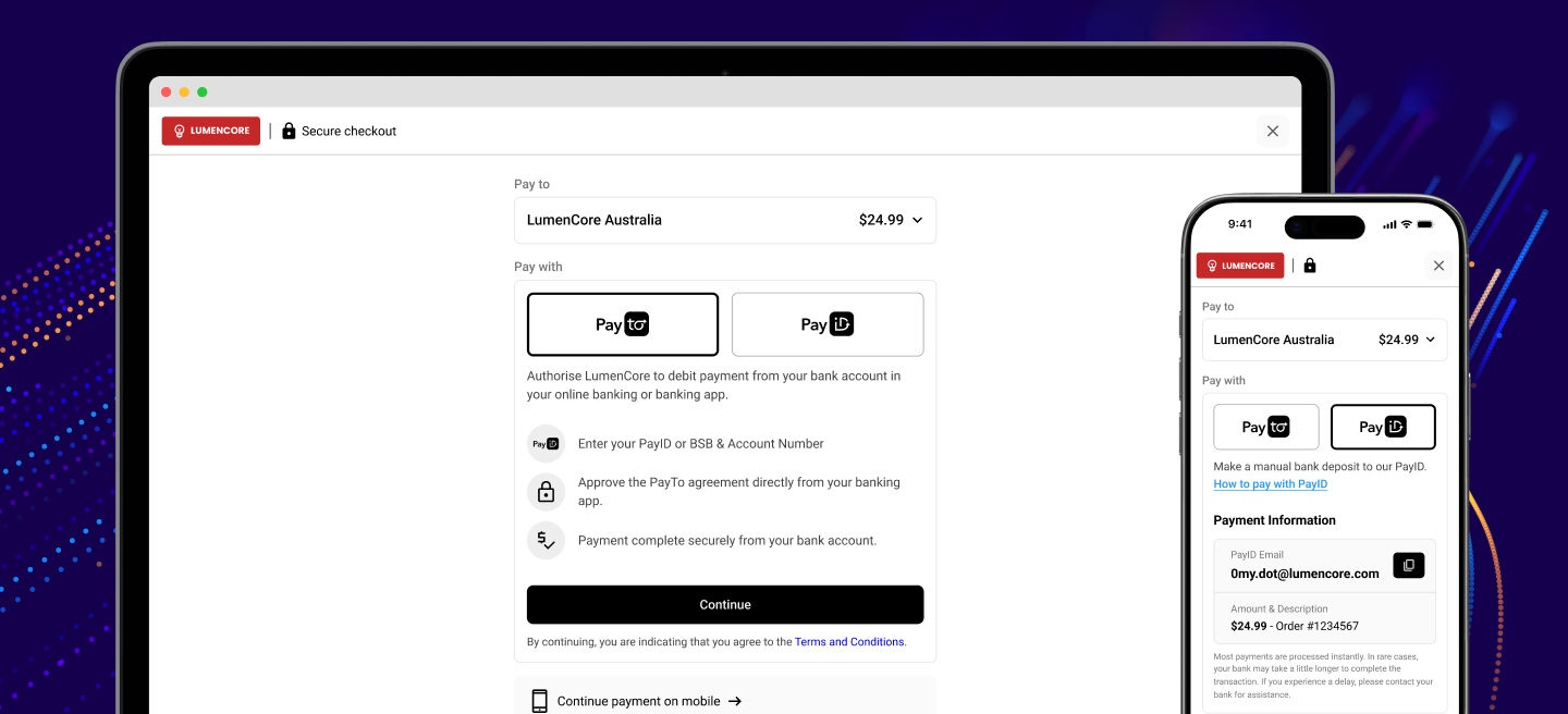 Support PayID and traditional bank transfers, configurable within the App. - Unified checkout experience