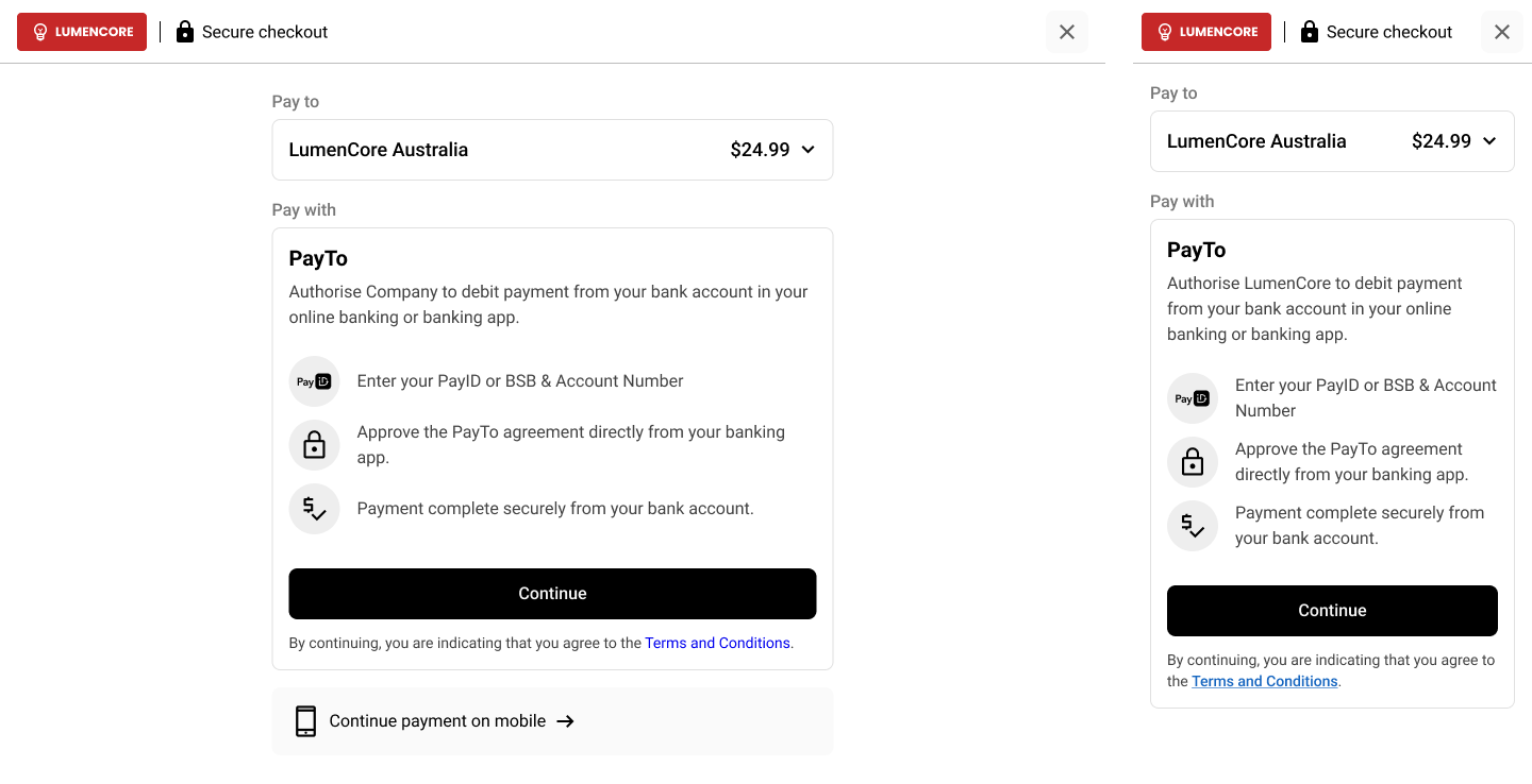 - guide them through the PayTo authorisation flow